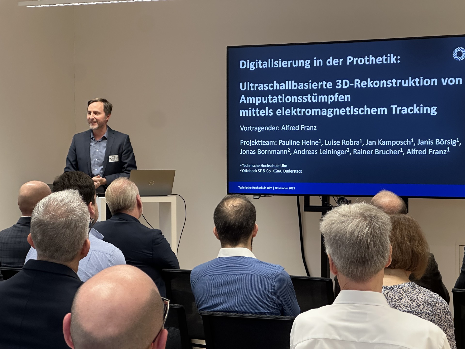 - Prof. Dr. Alfred Franz präsentierte ein Projekt zur ultraschallbasierten 3D-Rekonstruktion von Amputationsstümpfen mittels elktromagnetischem Tracking.