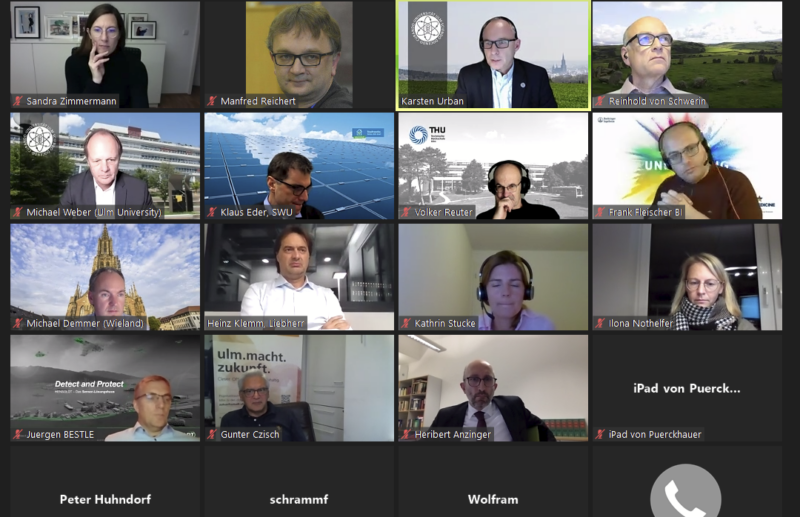 Die konstituierende Stifterversammlung wurde u.a. mit Grußworten von Professor Michael Weber, Präsident der Universität Ulm (UUlm), Professor Volker Reuter, Rektor der Technischen Hochschule Ulm (THU), Herrn Jonas Pürckhauer, Stellvertretender Hauptgeschäftsführer der IHK Ulm, und dem Ulmer Oberbürgermeister Gunter Czisch eröffnet.