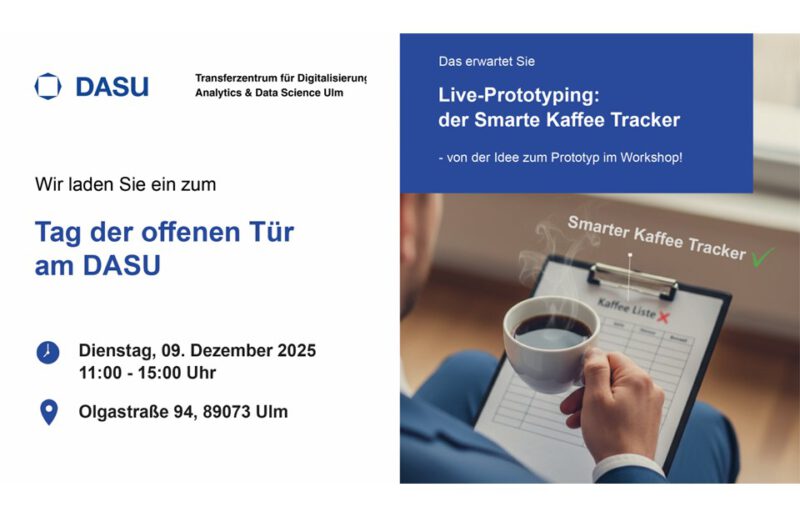 Wir laden Sie herzlich zum Tag der offenen Tür im DASU – Transferzentrum für Digitalisierung, Analytics & Data Science Ulm ein.